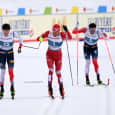 Katso videoNorjan Johannes Hösflot Kläbo hylättiin loppusuoran kolarista Venäjän hiihtoliiton Aleksandr Bolshunovin kanssa. Emil Iversen nousi MM-kultaan.