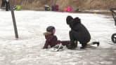 Helsinkiläiselle pellolle syntyi "surrealistinen paikka": Mutaiselle aukealle noussut merivesi jäätyi jättimäiseksi luistinradaksiLuonnon luoma luistelukenttä muodostui myrskyjen seurauksena. Kentälle kerääntyi lauantaina kymmeniä ulkoilijoita.luistinradat29.2.