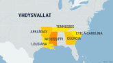 Ainakin 30 ihmistä kuoli pääsiäissunnuntain myrskyissä YhdysvalloissaKymmenet tornadot rikkoivat koteja muun muassa Mississippissä ja Etelä-Carolinassa.myrskyt13.4.